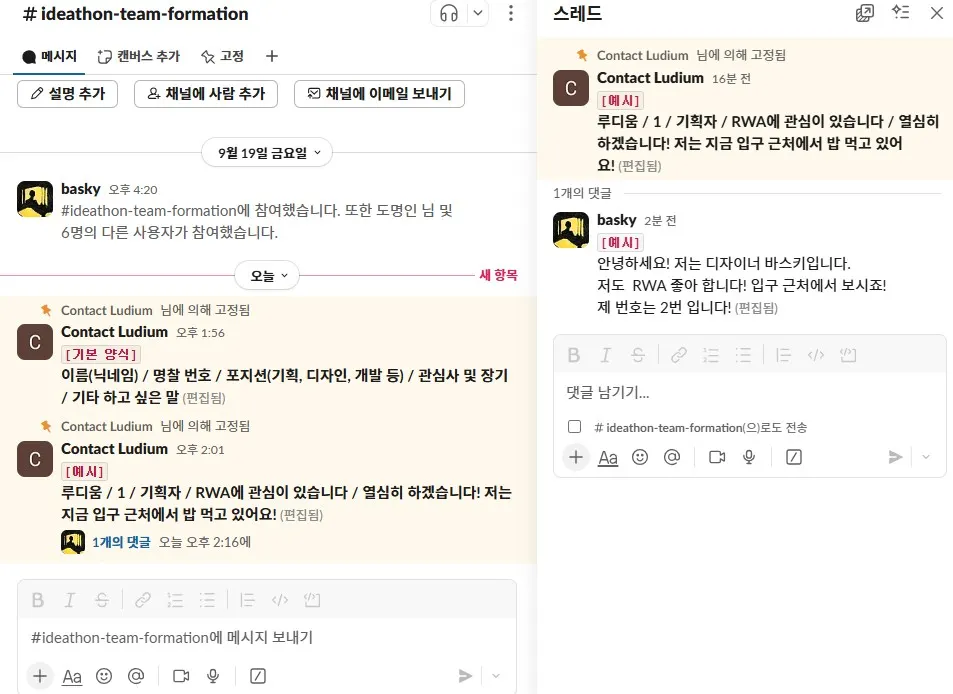 2. [ideathon-team-formation] 채널에서 다른 참여자의 소개를 보고 댓글 남기기