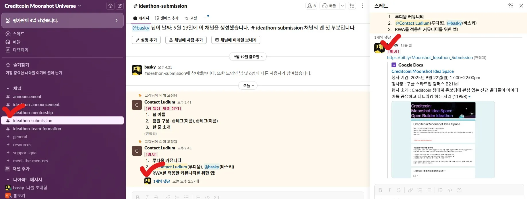 [ideathon-submission] 채널은 ‘모든 결과’(팀빌딩 완료, 아이디어 제출 완료)를 제출하는 채널!