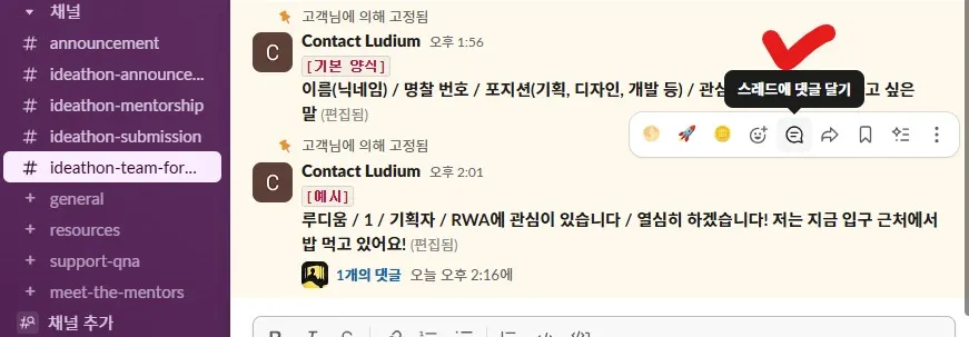 2. In the [ideathon-team-formation] channel, check other participantsโ introductions and leave a comment