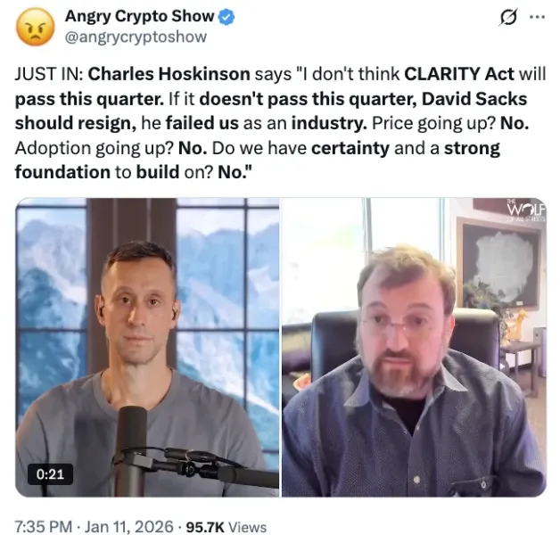 X (@angrycryptoshow), Charles Hoskinson interview (Jan 11, 2026)